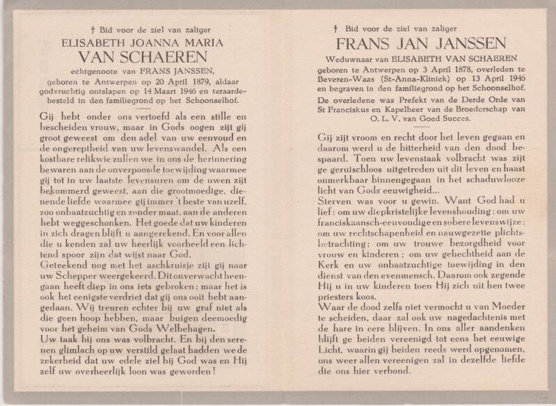 Joannes Franciscus Janssen x Elisabeth Van Schaeren