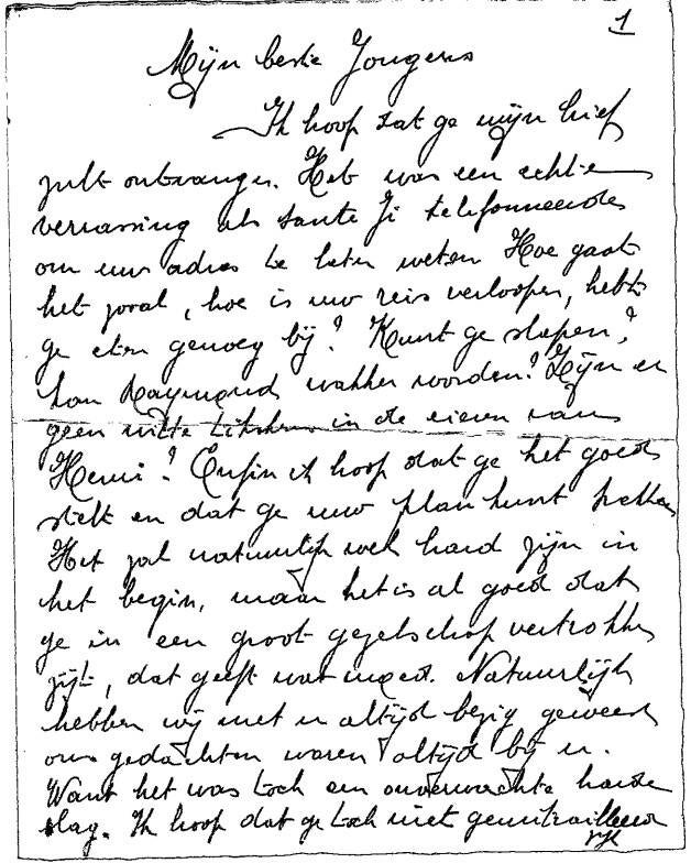 Dag Raymond, dag Henri, voor elk een dikken kus van Papa en Mama, en ik geef u elk een kruisje. God zegene en beware u.