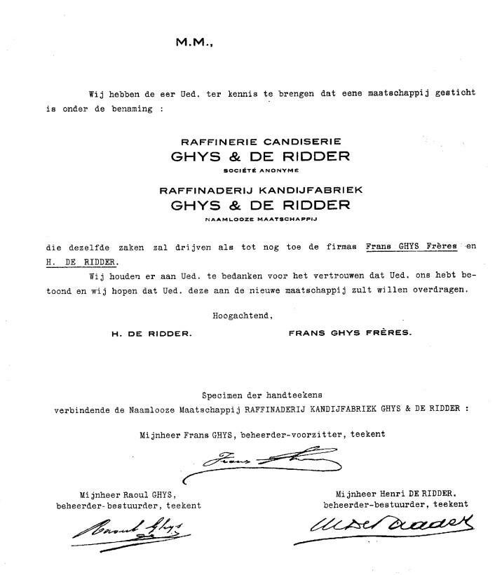 Raoul Ghys Sr en Henri De Ridder administrateur-directeur.