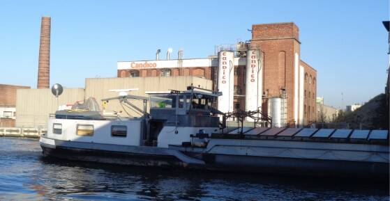 Zicht op het fabriek vanuit het Albertkanaal