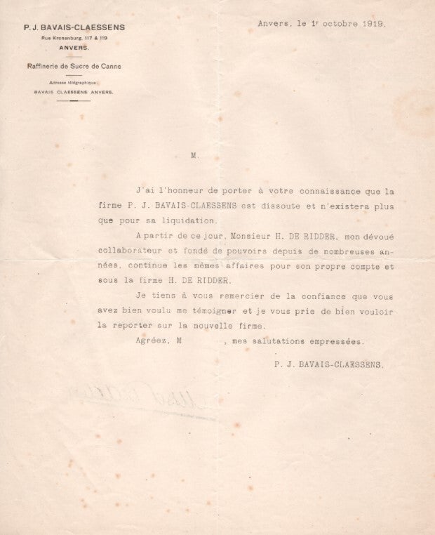 Het was op 1 oktober 1919, dat Henri de Ridder, die “fondé de pouvoirs” was van de firma, eigenaar werd.