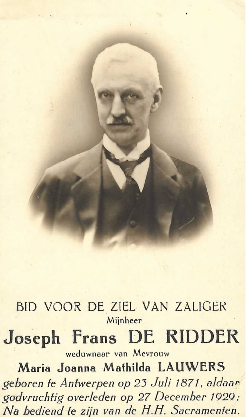 Op 27 december 1929 sterft Joseph De Ridder, haar oudste zoon.