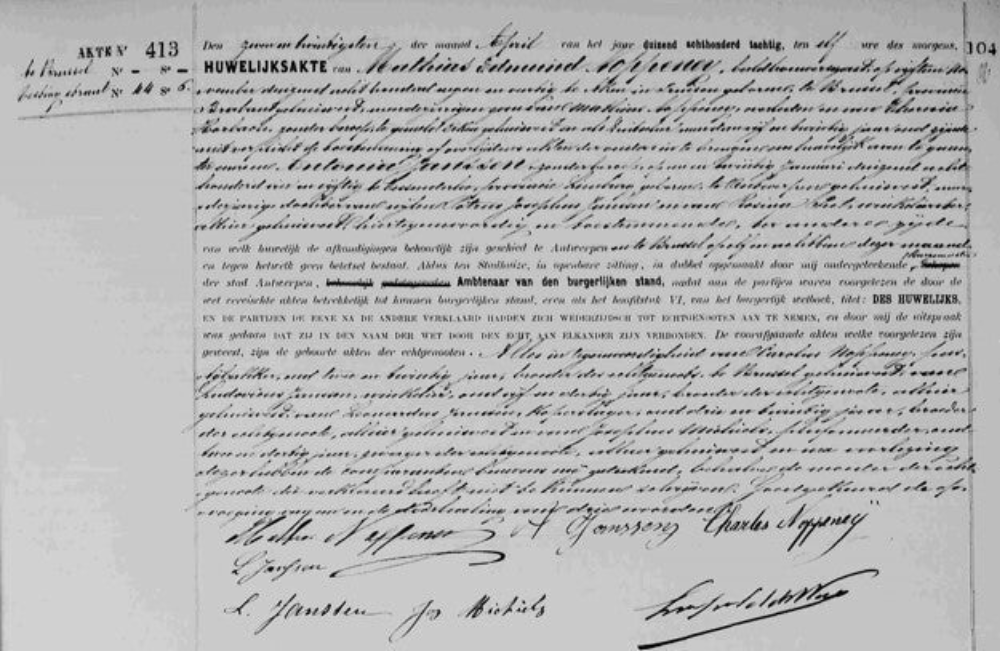 Huwelijksakte Mathias Edmund Noppeney met Antonia Janssen