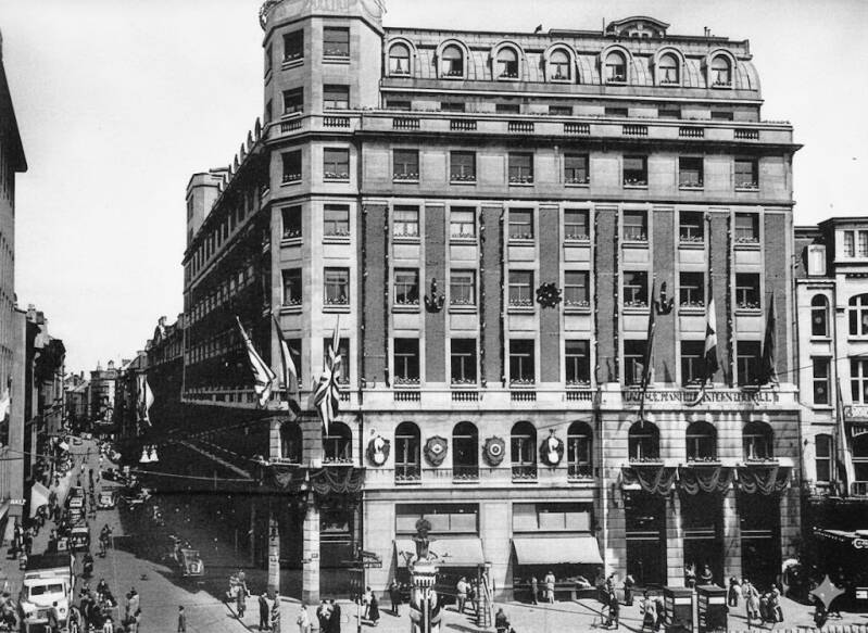 Het kantoorgebouw van de Agence Maritime Internationale, behoort tot de belangrijkste gezamenlijke ontwerpen van Joseph Hertogs en Gerard De Ridder, die zich vermoedelijk begin 1928 hadden geassocieerd. Voor Hertogs, de huisarchitect van de Antwerpse beau-monde en de zakenwereld die in 1930 zou overlijden, betekende de associatie het sluitstuk van zijn rijk gevulde loopbaan. Pas vanaf 1933 zette de jongere De Ridder, wiens carrière omstreeks 1905 van start was gegaan, het architectenbureau in eigen naam verder.
