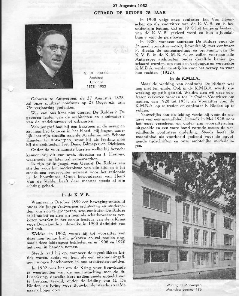 Samenwerking: Omstreeks 1928 associeerde hij zich met de bekende architect Joseph Hertogs. Na de dood van Hertogs in 1930 zette De Ridder hun gezamenlijke praktijk voort.