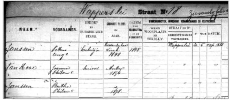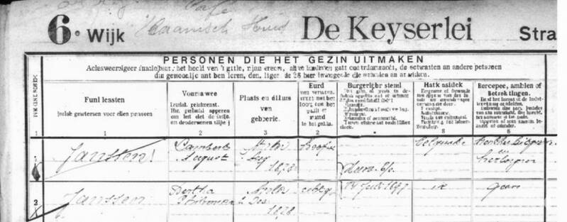 Buiten de familie Janssen – Van Hove en de familie Janssens – Janssen, staan er in die periode geen andere mensen op de De Keyserlei 22 ingeschreven. We kunnen dus aannemen dat ze elk één van de twee verdiepingen boven het café bewonen.