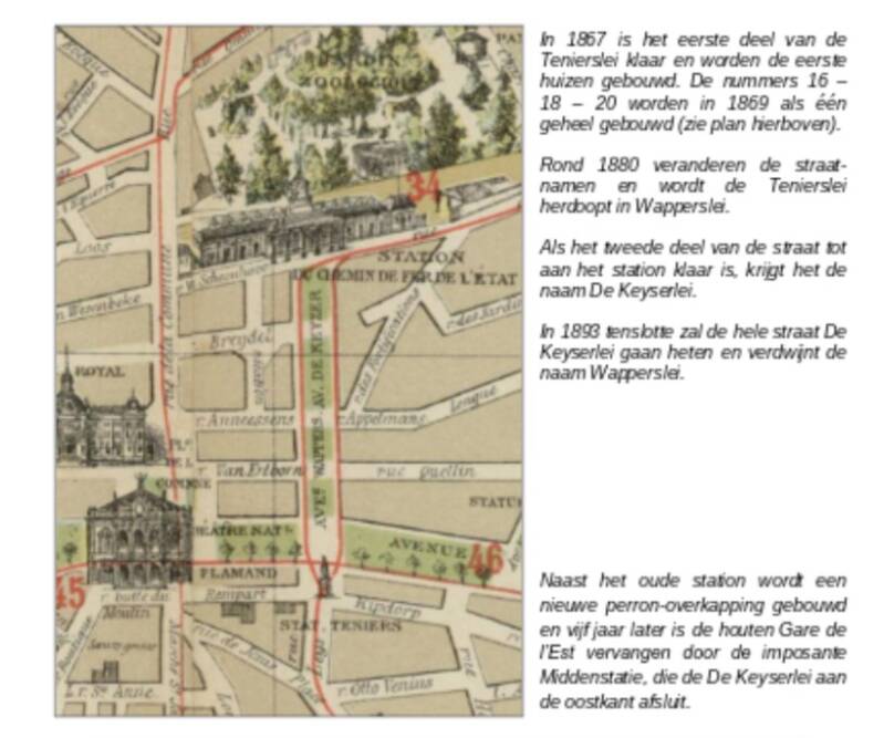 De "De Keyserlei" is volgebouwd. Het nieuwe station is in aanbouw. Aan de Avenue des Arts zijn nog de laatste resten van de afgebroken omwalling zichtbaar. aan weerszijden van de “Criée”, de metalen overdekte markthal, liggen nog bergen zand. Ideaal speelterrein. Leonard speelt er als kleine knaap met zijn kameraden regelmatig de “Boerenkrijg” na! De markthal zal spoedig terug worden afgebroken om plaats te maken voor de opera met daarnaast het operacafé “Caveau”. Op het “Boerenkrijg”-terrein wordt het “Panorama Verlat” gebouwd...