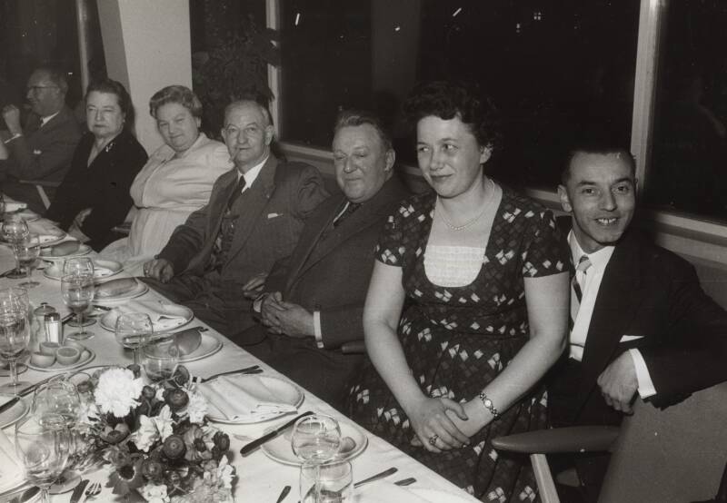 Hij staat boveneen rechts op de foto. Naast hem staat Pater Cyrinus, die proost was.