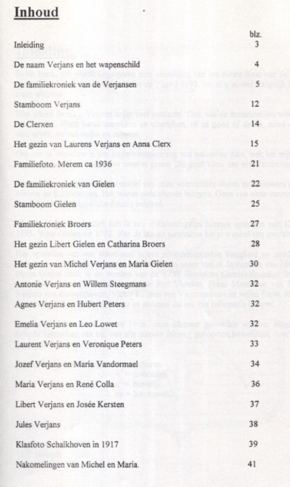 In dit boek, dat wordt uitgegeven naar aanleiding van het eerste feest van de afstammelingen van Michel Verjans en Maria Gielen op 1 april 1995, wil ik u zoveel mogelijk informeren over onze afkomst.