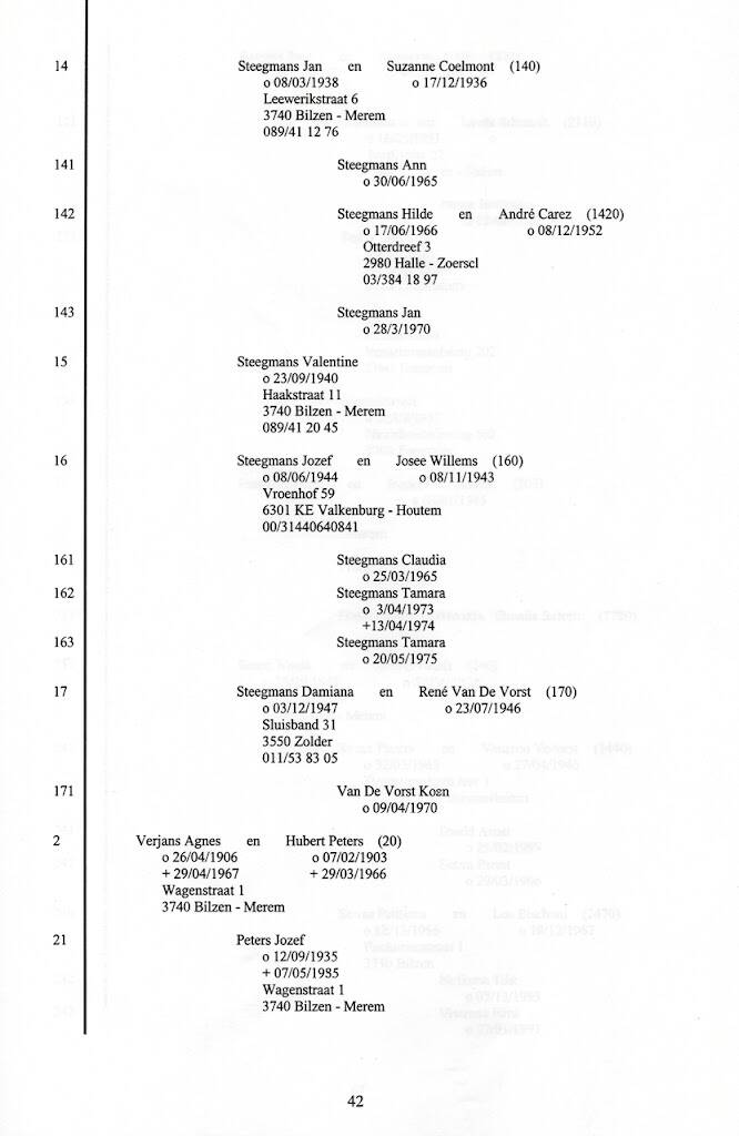 Ongetwijfeld kan er nog meer i.v.m. onze afkomst gevonden worden. Mag ik U dan ook beleefd verzoeken om mij van alle nieuwe feiten (geboorten, huwelijken, overlijdens...) op de hoogte te brengen.