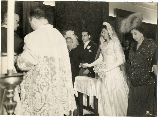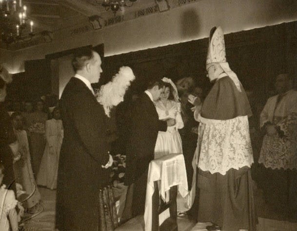 Aanleiding tot een plechtigheid van luisterrijke omvang gaf het huwelijk van juffrouw Maud De Ridder met dokter Carlos Alfredo Zemborain, gisteren voltrokken in het huis van de familie van de bruid door de pauselijke nuntius, monseigneur Fietta. Getuigen waren de heer Luis De Ridder en zijn echtgenote Ivonne Perrier, en Alfredo Zemborain met zijn echtgenote Justa Ester Dose.